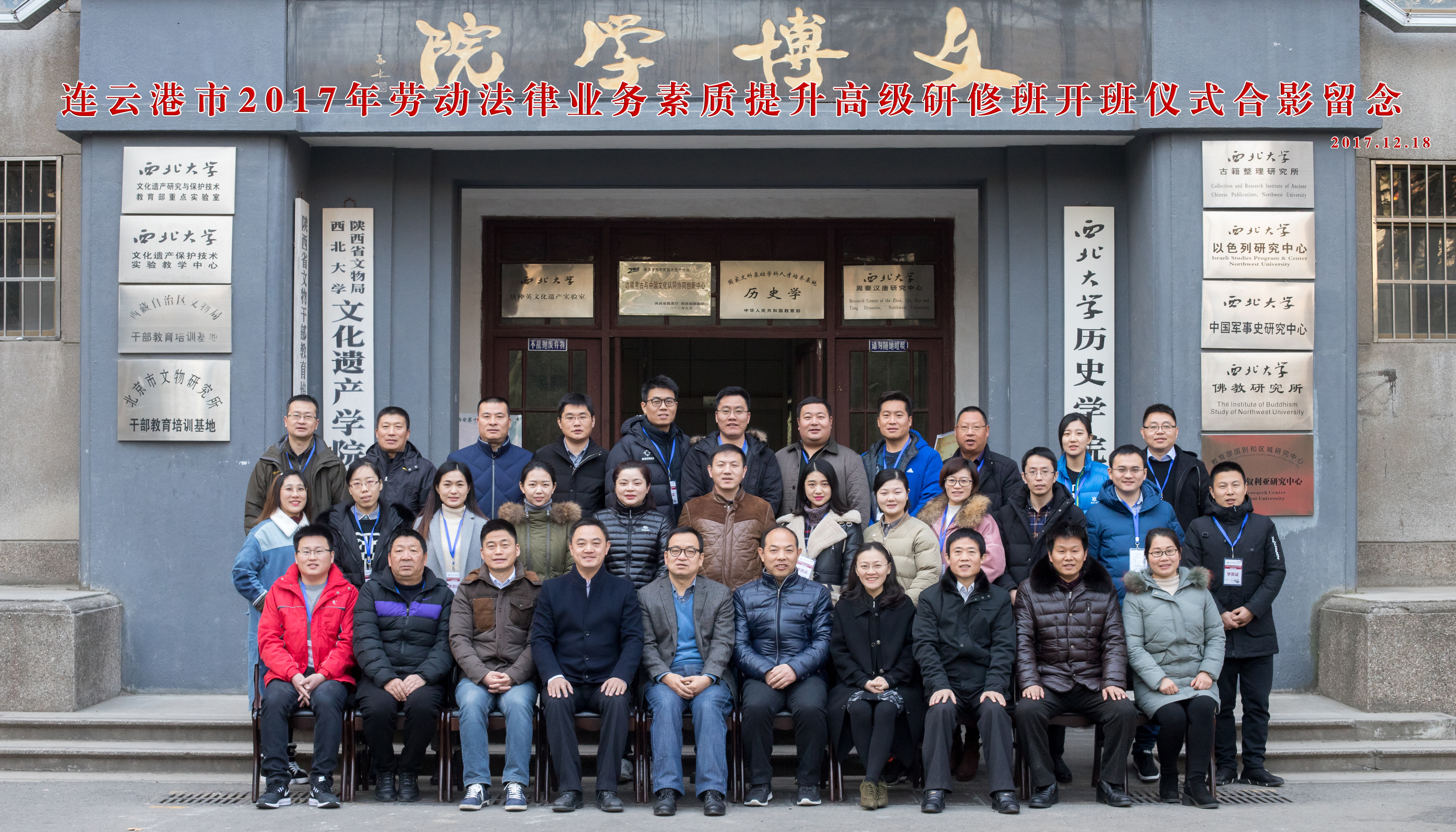 1218日上午,由连云港市人社局与我校776net必赢官网共同举办的“连云港市2017年劳动法律业务素质提升”高级研修班在我校太白校区开班。与会人员由连云港市人力资源和社会保障局、劳动人事争议仲裁院和监察大队以及我校776net必赢官网负责人构成,江苏连云港市社局和下辖各级政府单位的30余名参训领导干部参加开班仪式。